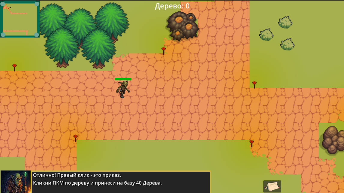 Игра активно разрабатывается на движке Godot. В данный момент я плотно работаю над визуальной частью: рисую спрайты для гоблинских построек и различных типов юнитов, а также прописываю логику поведения искусственного интеллекта и механики строительства базы.